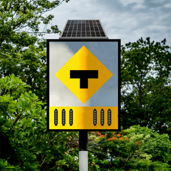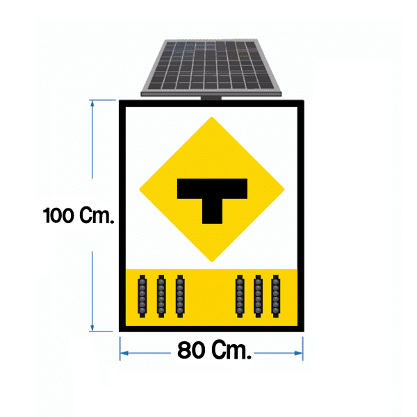 ป้ายไฟกระพริบทางแยก ตัว T ขนาด 80×100 Cm. ระบบโซลาร์เซลล์ (ไม่รวมเสา)