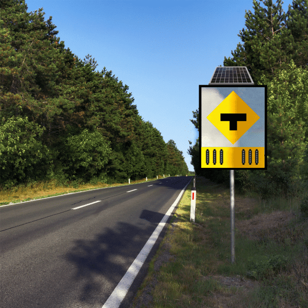 ป้ายไฟกระพริบทางแยก ตัว T ลดอุบัติเหตุตรงทางแยกทันทีที่ติดตั้ง