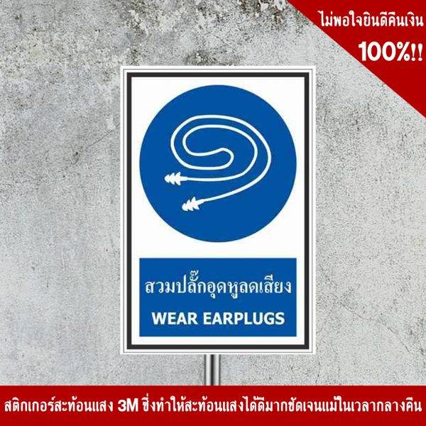 - ป้ายสวมปลั๊กอุดหูลดเสียง อลูมิเนียม หนา 1.2 mm. 20×30 Cm. 3M Safety Grade (รับประกัน 1 ปี)