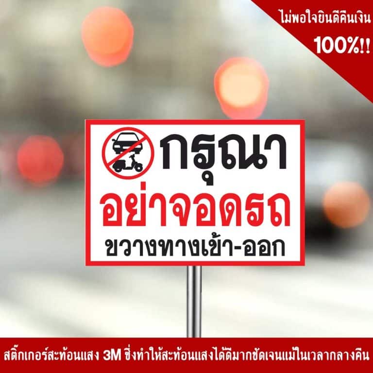 ป้ายกรุณาอย่าจอดรถ ขวางทางเข้า-ออก มีรถเข้าออก ตลอดเวลา สะท้อนแสง 3M