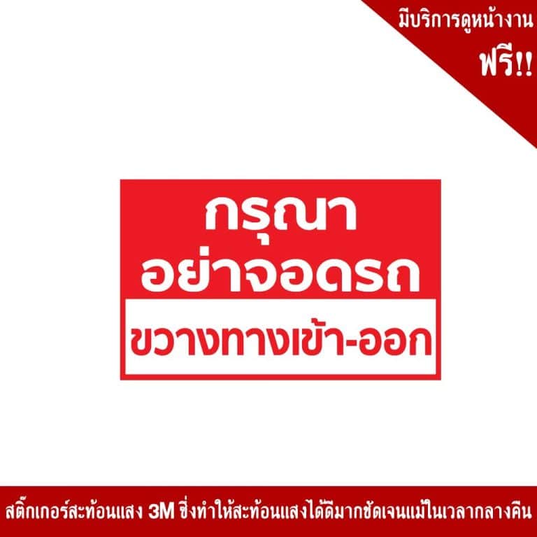 - ป้ายกรุณาอย่าจอดรถ ขวางทางเข้า-ออก มีรถเข้าออก ตลอดเวลา อลูมิเนียม หนา 1.2 mm. 40×60 Cm. 3M Safety Grade (รับประกัน 1 ปี)