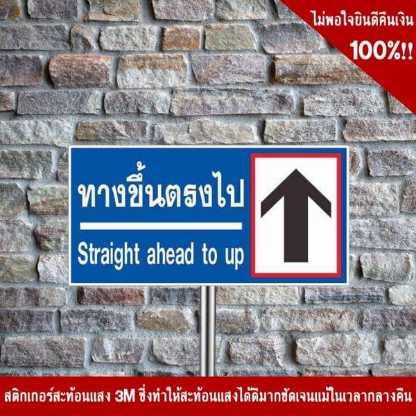 - ป้ายทางขึ้นตรงไป อลูมิเนียม หนา 1.2 mm. 25×50 Cm. 3M Safety Grade (รับประกัน 1 ปี)