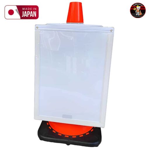 ป้ายติดตั้งบนกรวยจราจร วัสดุ PVC มาตรฐานญี่ปุ่น ป้องกันน้ำและฝน มั่นใจในทุกการใช้งาน
