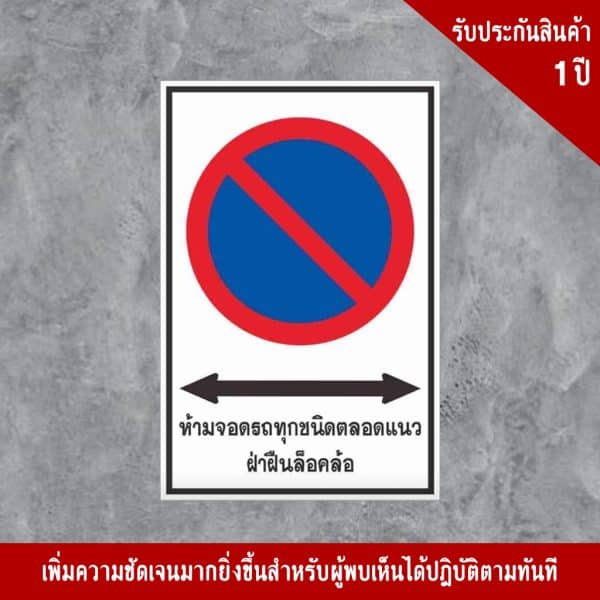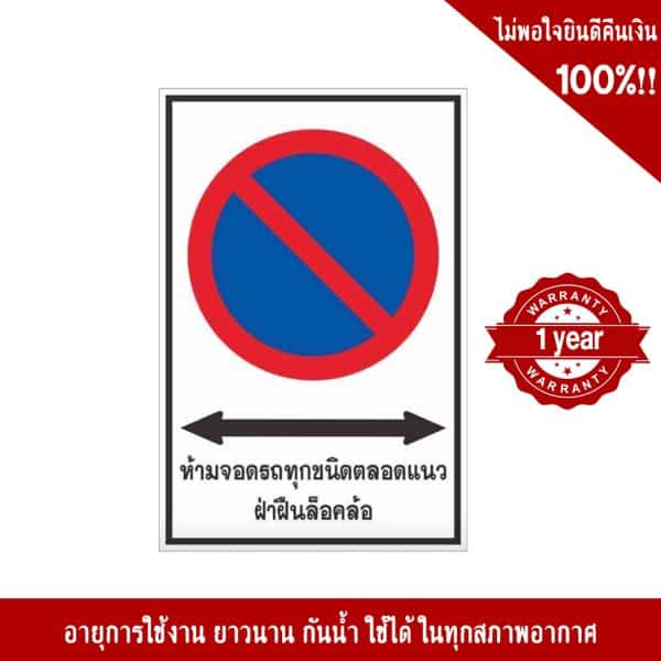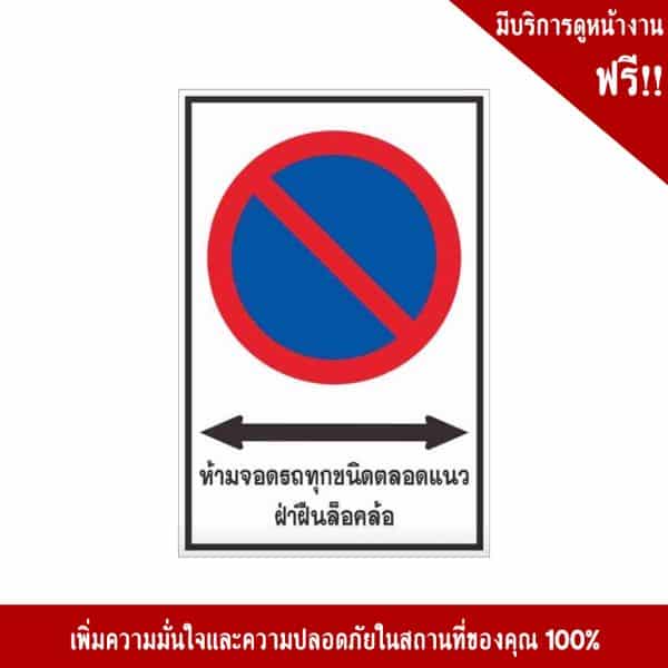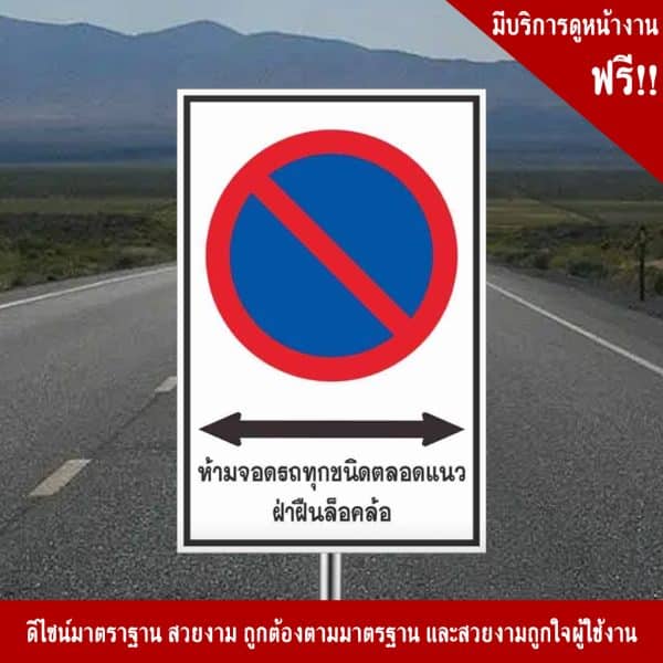 ป้ายห้ามจอดรถทุกชนิดตลอดแนว ฝ่าฝืนล็อคล้อ ป้ายประเภทบังคับ หรือ ป้ายเตือน มาตรฐานกรมทางหลวง เพิ่มความปลอดภัยในพื้นที่ของคุณได้100%