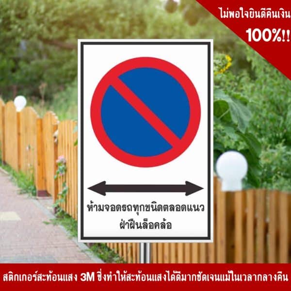 ป้ายห้ามจอดรถทุกชนิดตลอดแนว ฝ่าฝืนล็อคล้อ สะท้อนแสง 3M