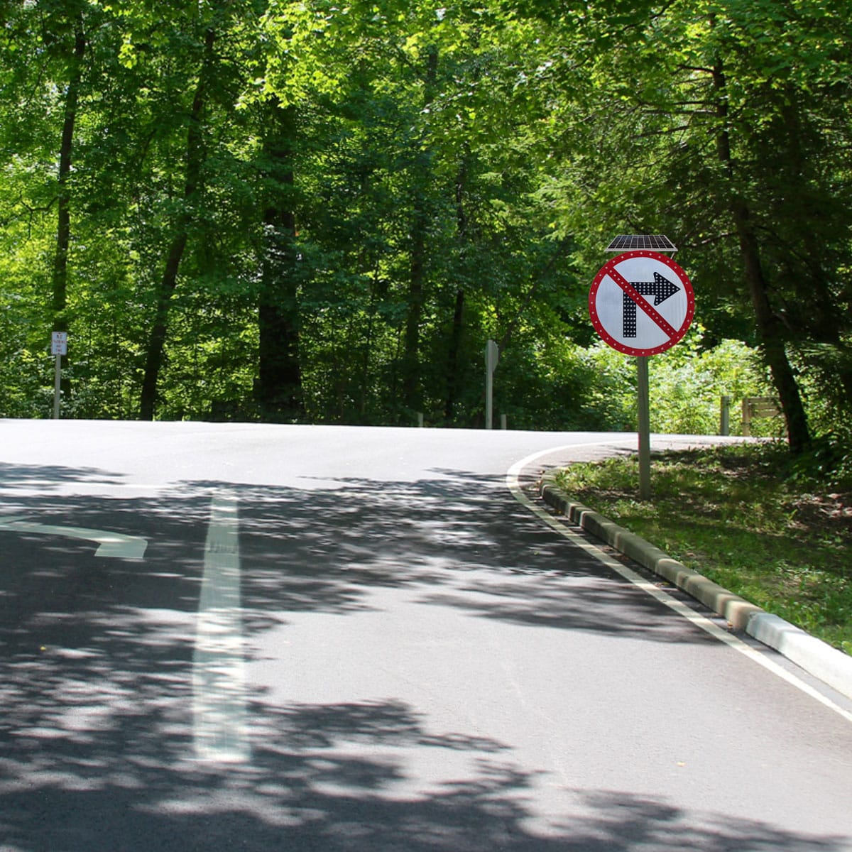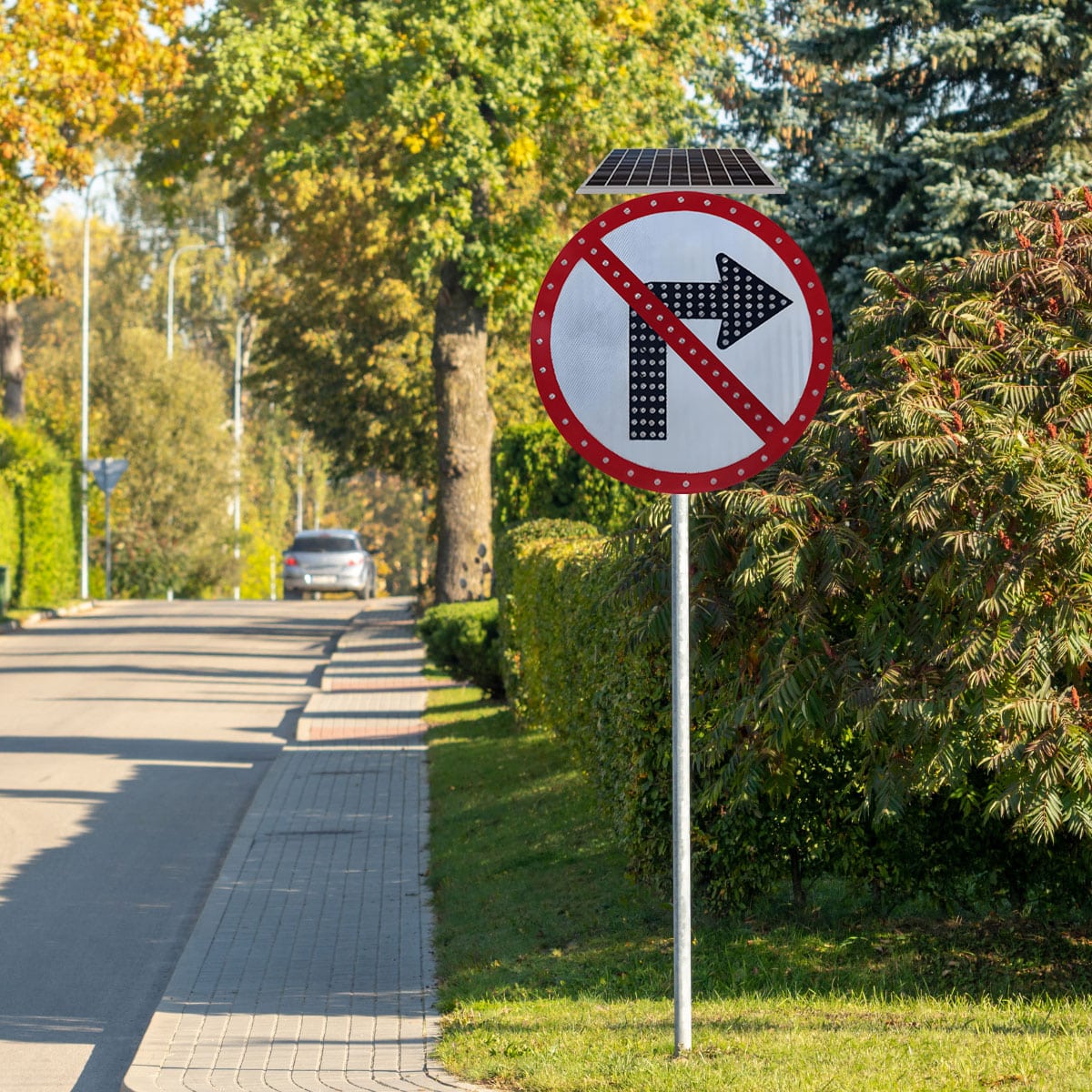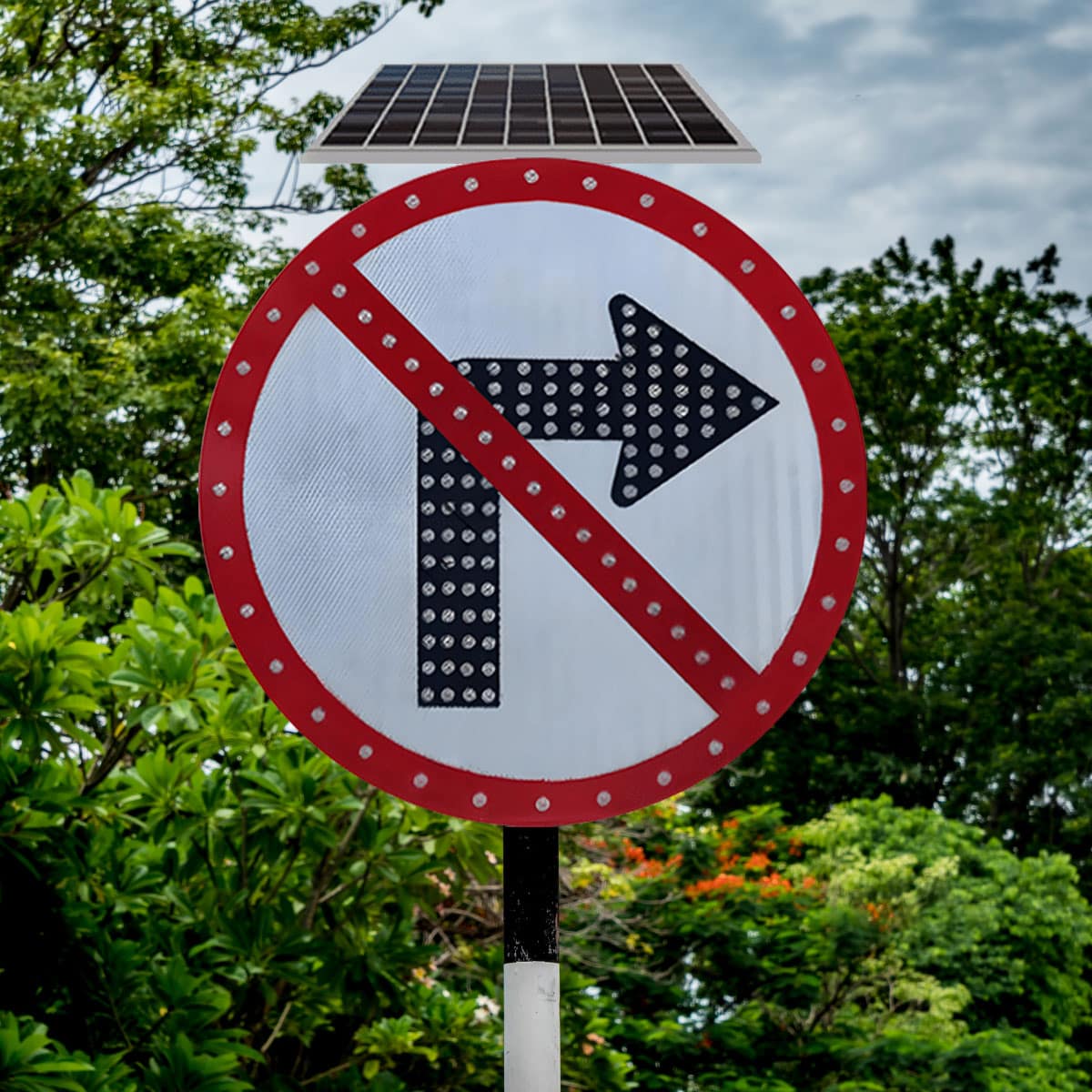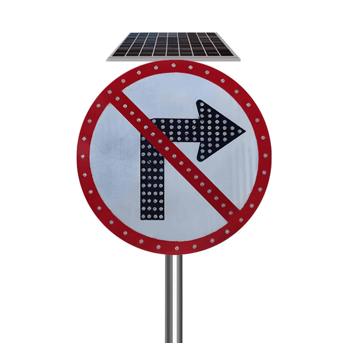 ป้ายไฟกระพริบโซล่าเซลล์ ห้ามเลี้ยวขวา วัสดุอลูมิเนียม 1.2 mm. สติ๊กเกอร์ 3M Diamond Grade (ไม่รวมเสา)