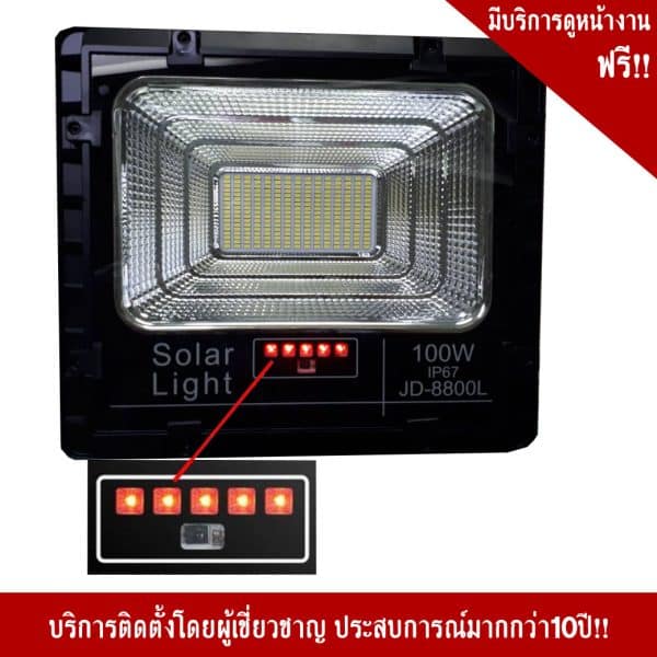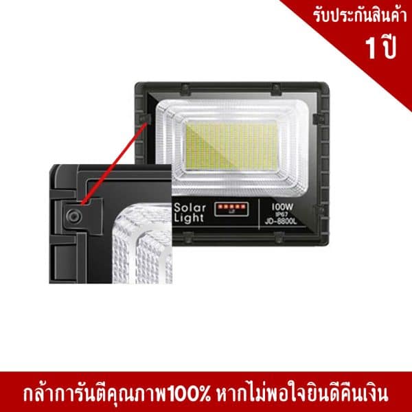 100W ขนาดโคมไฟ 29×34 Cm. ขนาดแผงโซล่า 58×36 Cm.