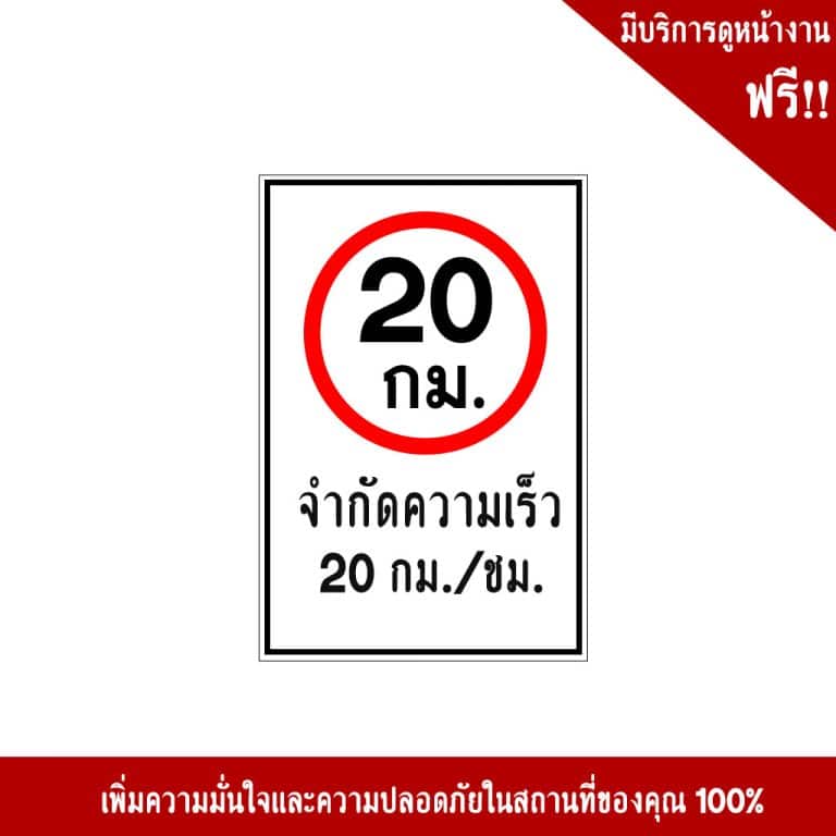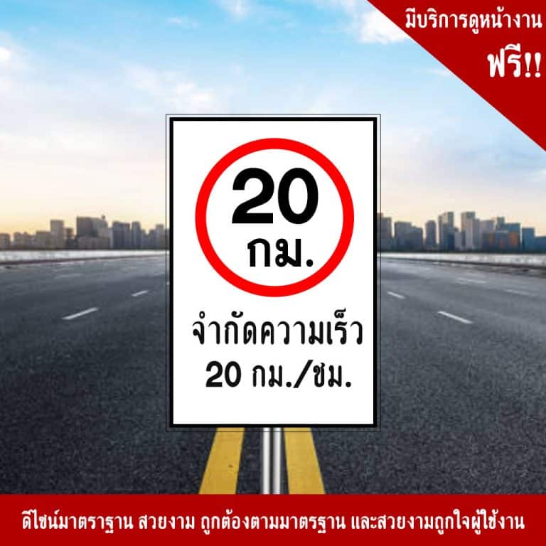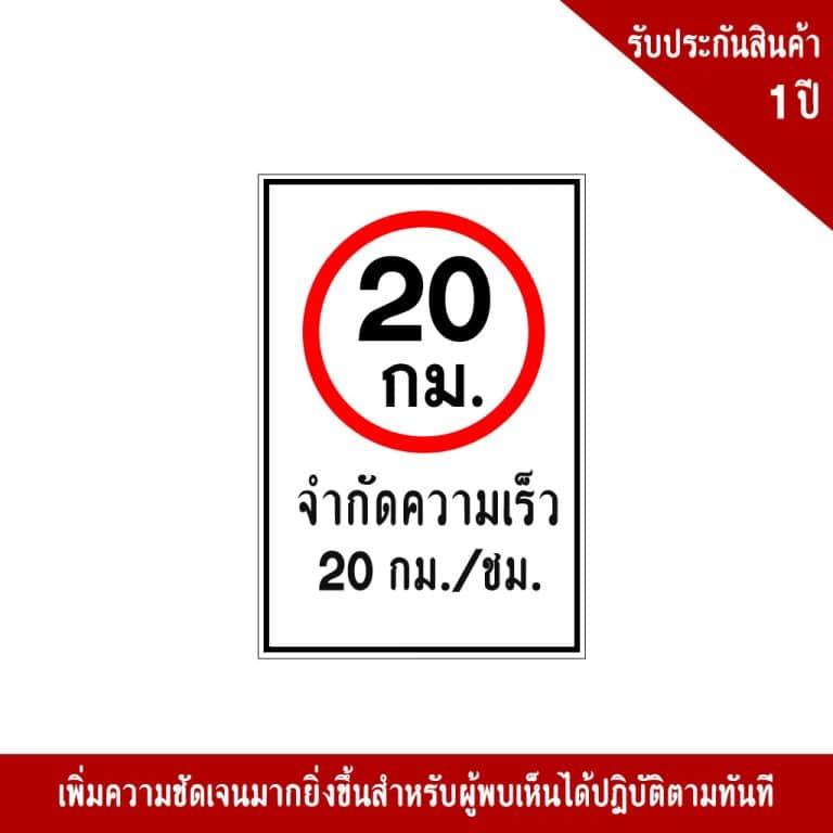 - ป้ายจำกัดความเร็ว 20กม./ชม. อลูมิเนียม หนา 1.2 mm.45×60 Cm. 3M Safety Grade (รับประกัน 1 ปี)