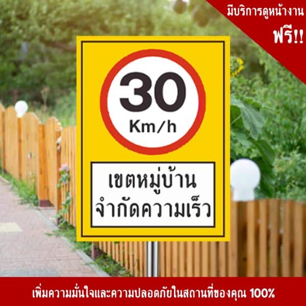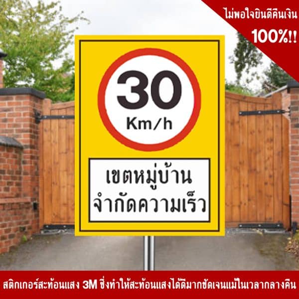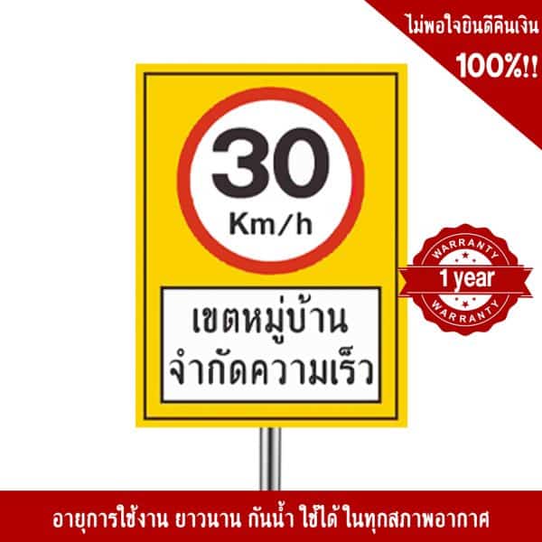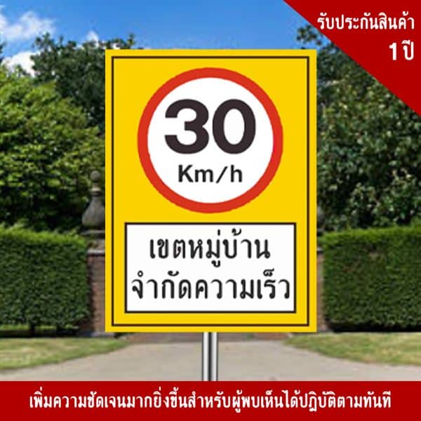 ป้ายจำกัดความเร็วเขตหมู่บ้าน 30 km./hr อลูมิเนียม หนา 1.2 mm 30×45 cm 3M Safety Grade (รับประกัน 1 ปี)