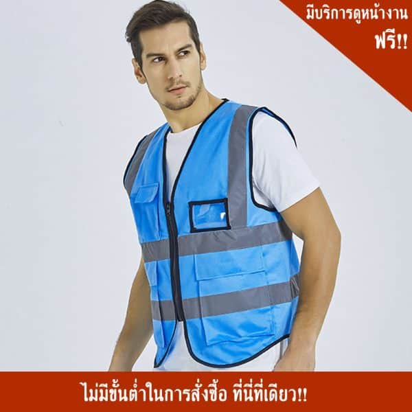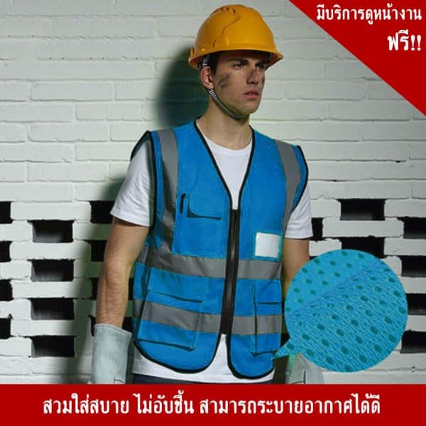 - เสื้อจราจรสีน้ำเงิน พร้อมแถบสะท้อนแสง มีช่องใส่บัตร