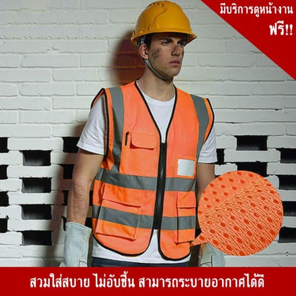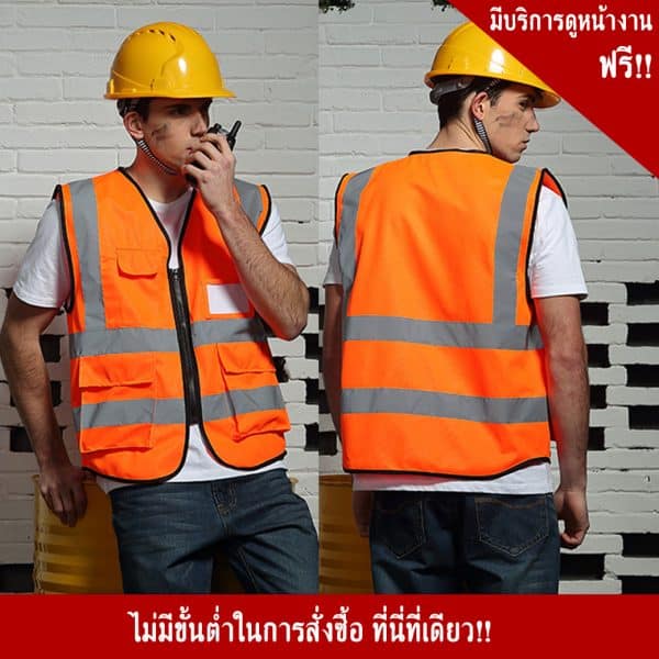 - เสื้อจราจรสีส้ม พร้อมแถบสะท้อนแสง มีช่องใส่บัตร