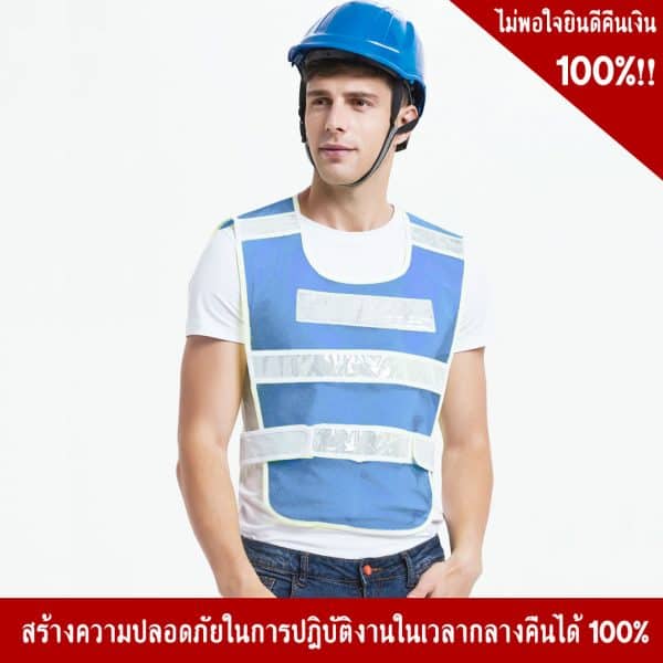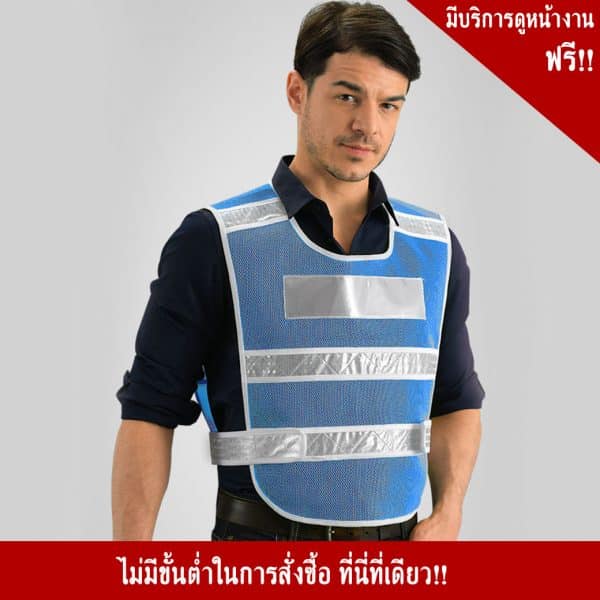 - เสื้อจราจรสีฟ้า พร้อมแถบสะท้อนแสง สายตีนตุ๊กแกผ้าตะข่าย