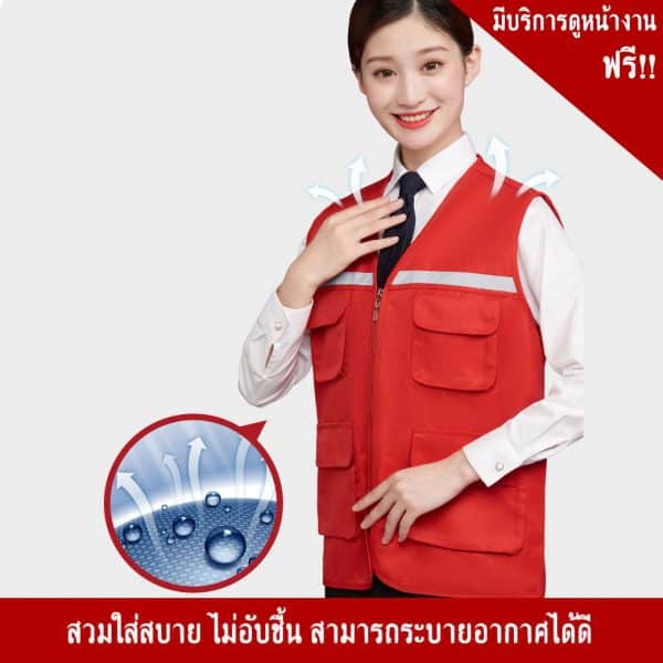 - เสื้อจราจรสีแดง พร้อมแถบสะท้อนแสง
