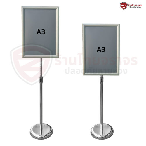 ขาตั้งป้าย โปสเตอร์สแตนเลสผลิตจากวัสดุสแตนเลส แข็งแรง ทนทาน ใช้งานได้ยาวนานมากกว่า 3 ปี