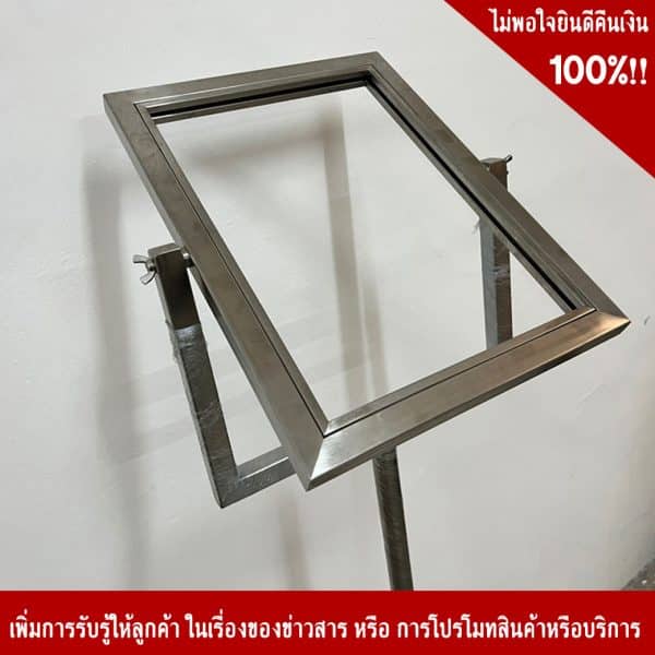 ขาตั้งป้าย โปสเตอร์สแตนเลสเพิ่มความโดดเด่น และความชัดเจนในการประชาสัมพันธ์ กระจายข่าวสาร