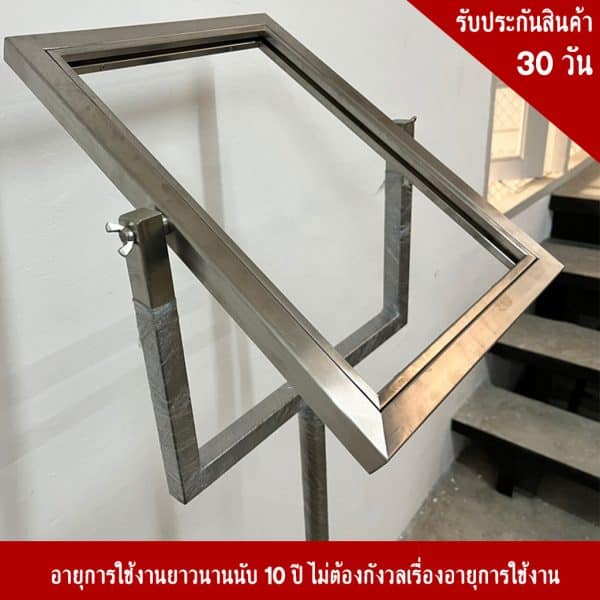 ขาตั้งป้าย โปสเตอร์สแตนเลสผลิตจากวัสดุสแตนเลส แข็งแรง ทนทาน ใช้งานได้ยาวนานมากกว่า 3 ปี