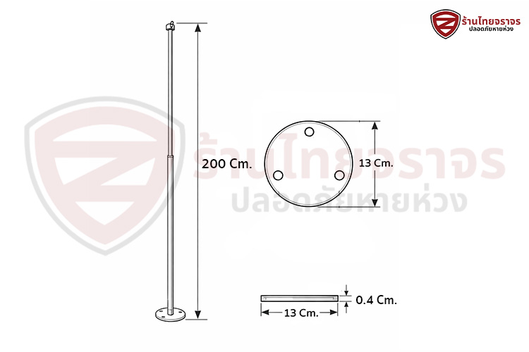 เสาเพลท สแตนเลส SUS201 (สำหรับถุงลมแบบมีเชือก) ความสูง 2 เมตร