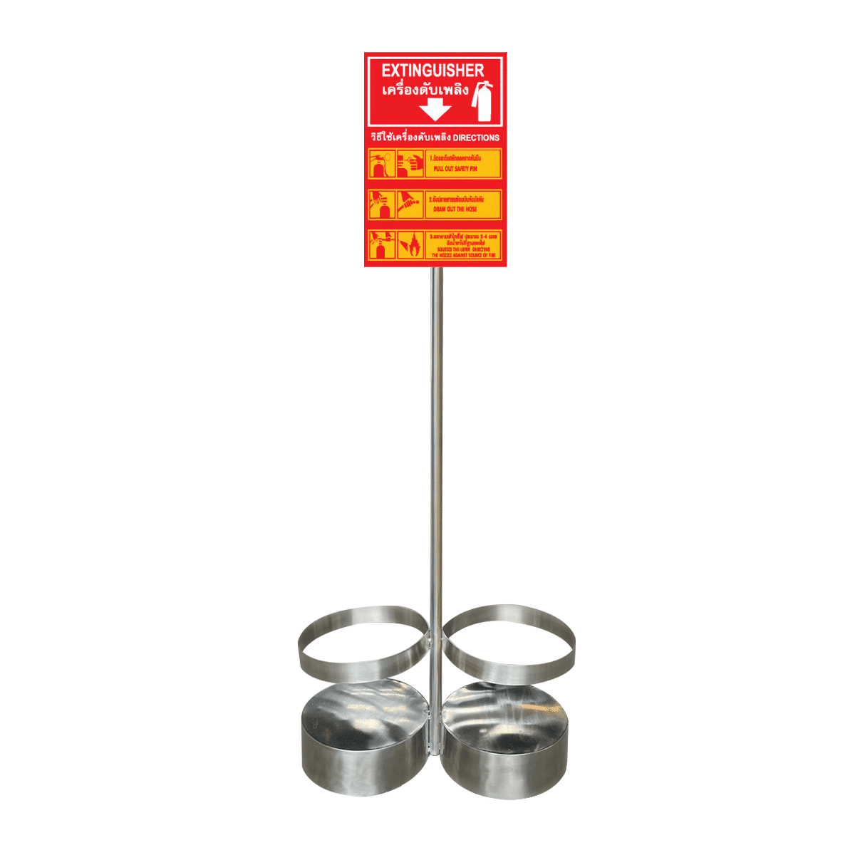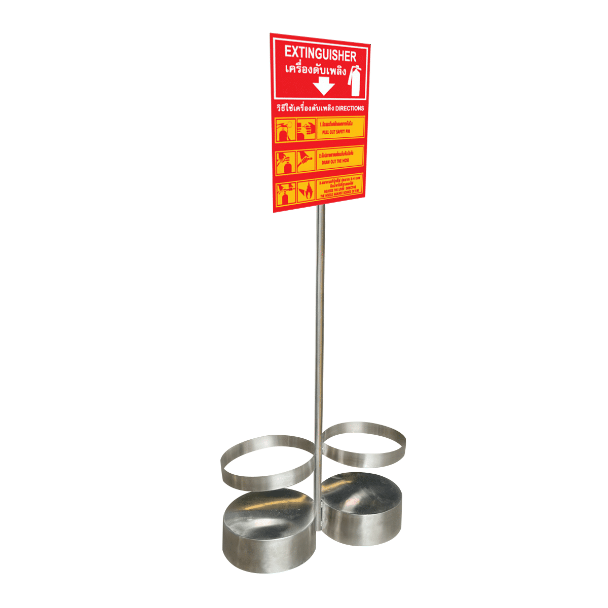 ป้ายสแตนเลสถังดับเพลิง ชนิดวางถังคู่ แข็งแรง ทนทาน ใช้งานได้ยาวนาน