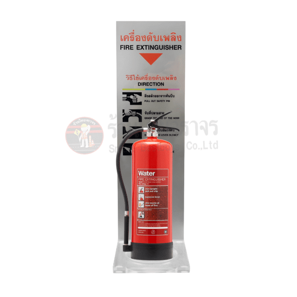 - มีป้ายแสดงวิธีใช้ถังดับเพลิง วัสดุสติ๊กเกอร์ PVC