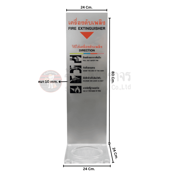 สแตนตั้งถังดับเพลิง รุ่นฐานอคิรลิคใส หนา 20 มม. ขนาด 24×28 Cm. แผ่นตั้งป้ายอะคริลิคใส 10 มม. ขนาด 24×80 Cm.