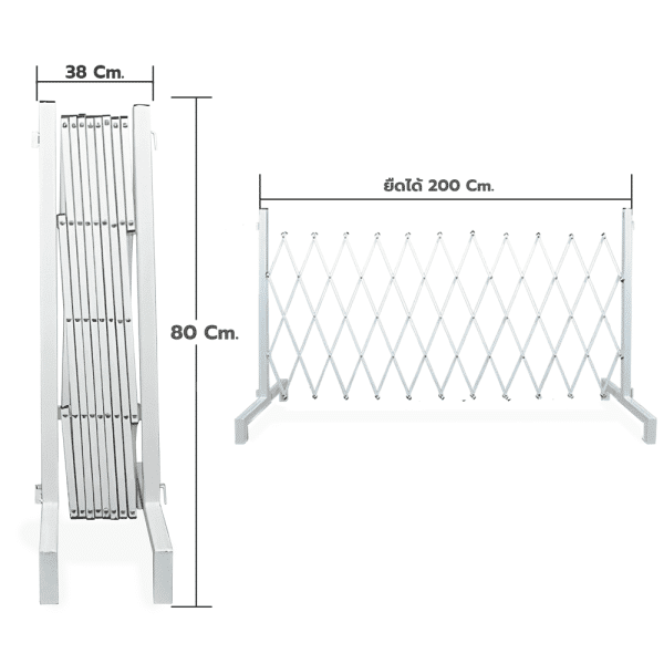 - ปรับความยาว: สามารถปรับความยาวของแผงกั้นให้เหมาะสมกับพื้นที่ที่ต้องการใช้งานได้ โดยการยืดหรือหดแผงกั้นตามความจำเป็น