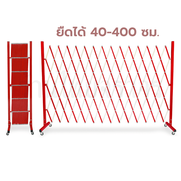 แผงกั้นเหล็กยืดหดได้ สีขาว-เเดง สูง 150 ซม ยืดได้ 40-400 ซม.