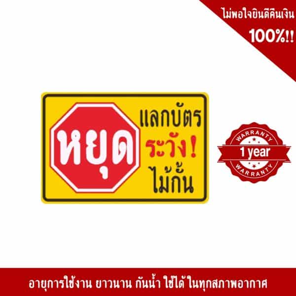ลองใช้ป้ายเตือน ป้ายแนะนำ ป้ายความปลอดภัย ดูก่อน และถ้าสินค้าเสียหายจากการใช้งาน ภายใน 1 ปี ทางเรายินดีคืนเงิน แล้วแบบนี้คุณมีอะไรต้องเสี่ยง?