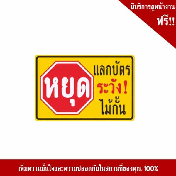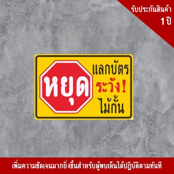 - ป้ายหยุดแลกบัตร ระวัง! ไม้กั้น อลูมิเนียม หนา 1.2 mm. 20×30 cm. 3M Safety Grade (รับประกัน 1 ปี)
