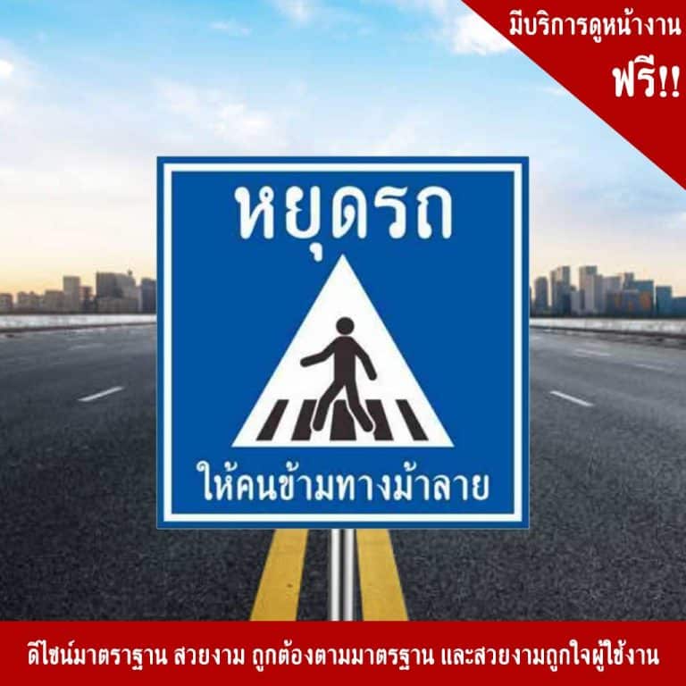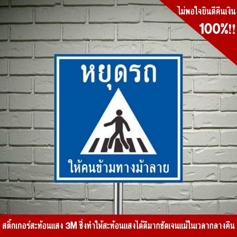 ป้ายหยุดรถให้คนข้ามทางม้าลาย เพิ่มความชัดเจนเรื่องเส้นทางเดินรถมากถึง 2 วัสดุสะท้อนแสง 3M ในราคาโรงงาน!!