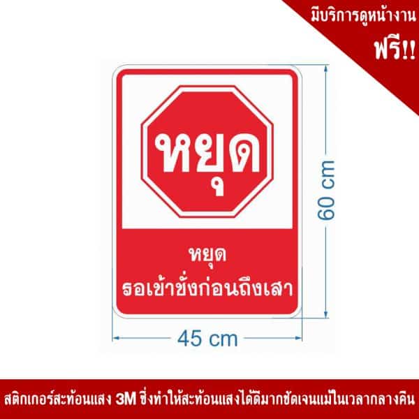 - ป้ายหยุดรอเข้าชั่งก่อนถึงเสา สะท้อนแสง 3M อลูมิเนียม หนา 1.2 mm. 20×30 cm. 3M Safety Grade (รับประกัน 1 ปี)