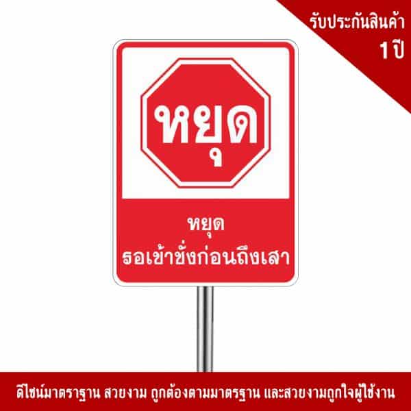 ป้ายหยุดรอเข้าชั่งก่อนถึงเสา NN-50 สะท้อนแสง 3M