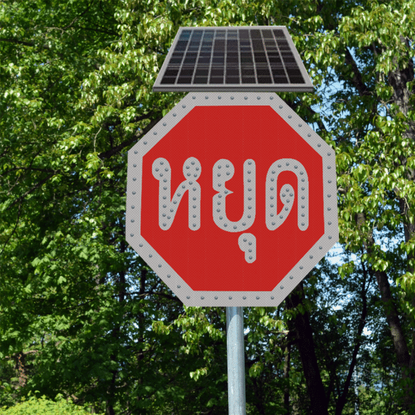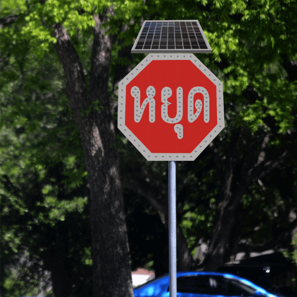 ป้ายหยุด 8 เหลี่ยมไฟกระพริบ ลดอุบัติเหตุตรงทางแยกทันทีที่ติดตั้ง