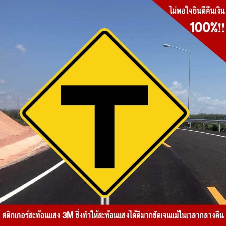 ป้ายเตือนระวังทางแยกรูปตัวที สะท้อนแสง 3M