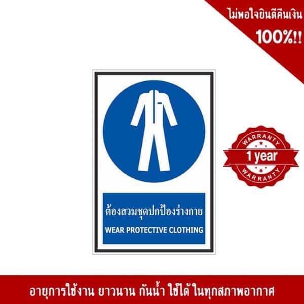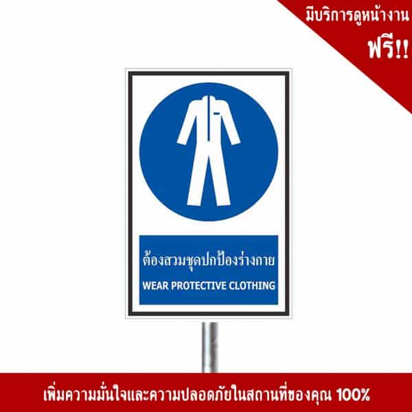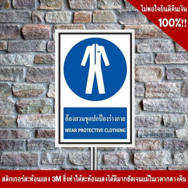 - ป้ายต้องสวมชุดปกป้องร่างกาย อลูมิเนียม หนา 1.2 mm. 20×30 Cm. 3M Safety Grade (รับประกัน 1 ปี)