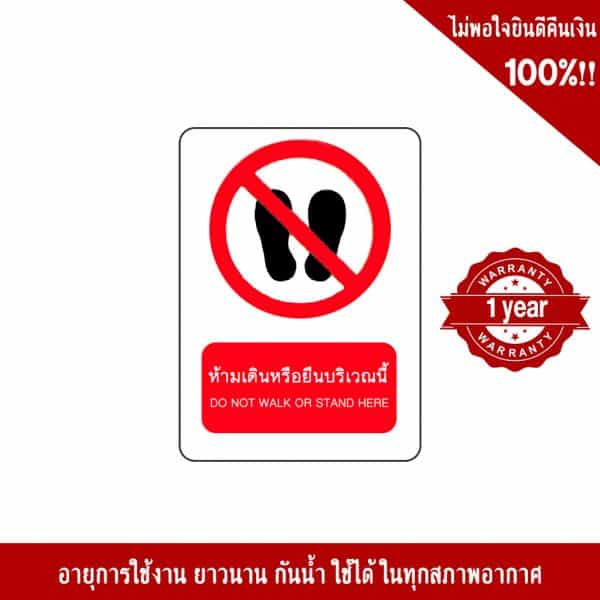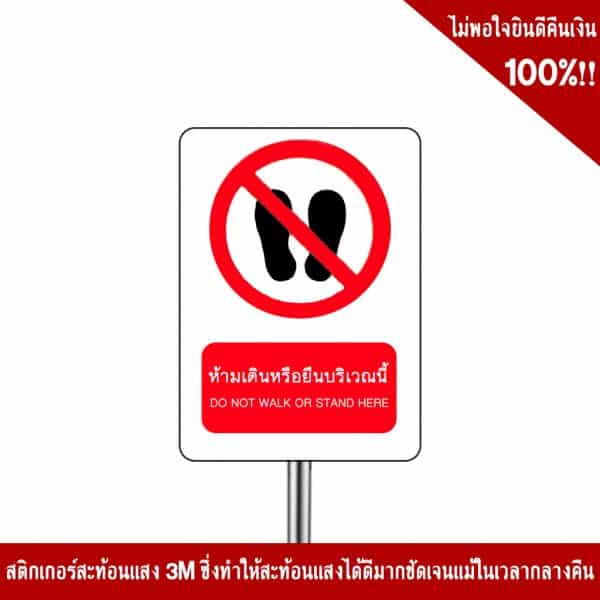 - ป้ายห้ามเดินหรือยืนบริเวณนี้ อลูมิเนียม หนา 1.2 mm. 20×30 Cm. 3M Safety Grade (รับประกัน 1 ปี)