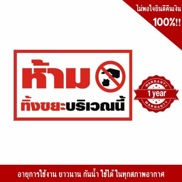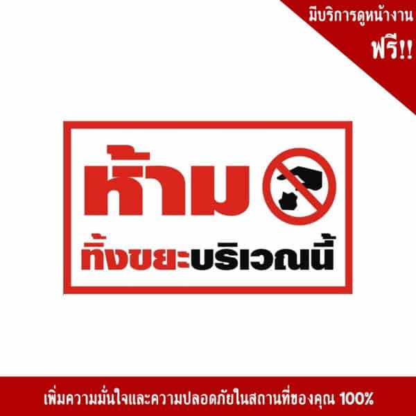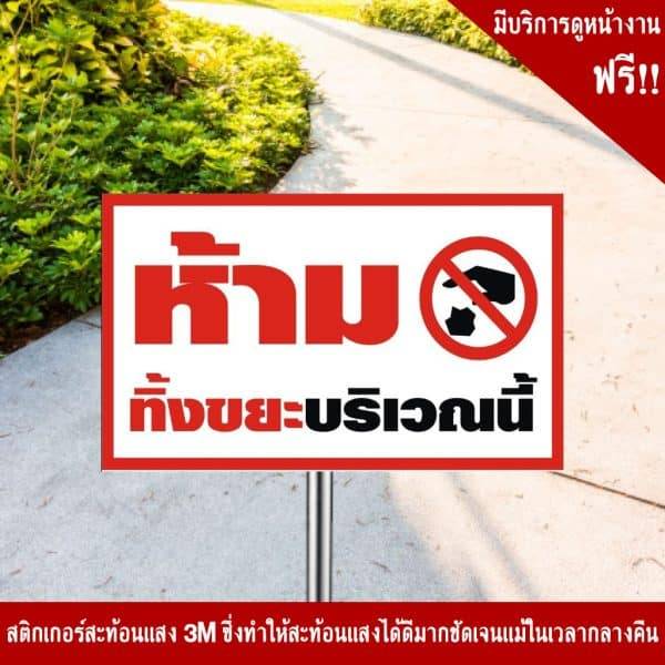- ป้ายห้ามทิ้งขยะบริเวณนี้ อลูมิเนียม หนา 1.2 mm. 20×30 Cm. 3M Safety Grade (รับประกัน 1 ปี)