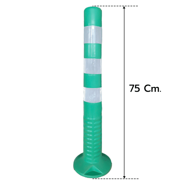 เสาหลักจราจรล้มลุกได้ สีเขียว วัสดุ TPU สูง 75 Cm. คาดแถบสะท้อนแสงสีขาว 3 แถบ (ถูกเหยียบได้ประมาณ 200 ครั้ง)