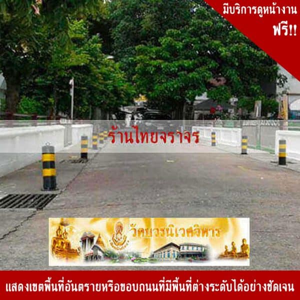 - เสาเหล็กกั้นรถชนิดถอดออกได้ ทำให้ แสดงเขตพื้นที่อันตรายหรือขอบถนนที่มีพื้นที่ต่างระดับได้อย่างชัดเจน