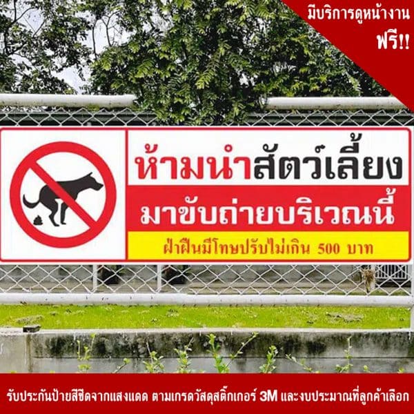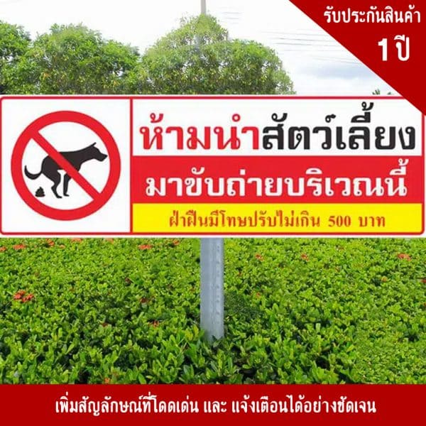 - ป้ายห้ามนำสัตว์เลี้ยงมาขับถ่ายบริเวณนี้ สะท้อนแสง 3Mอลูมิเนียม หนา 1.2 mm. 30×90 cm. 3M Safety Grade (รับประกัน 1 ปี)