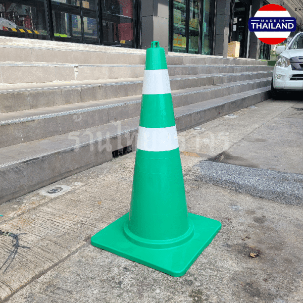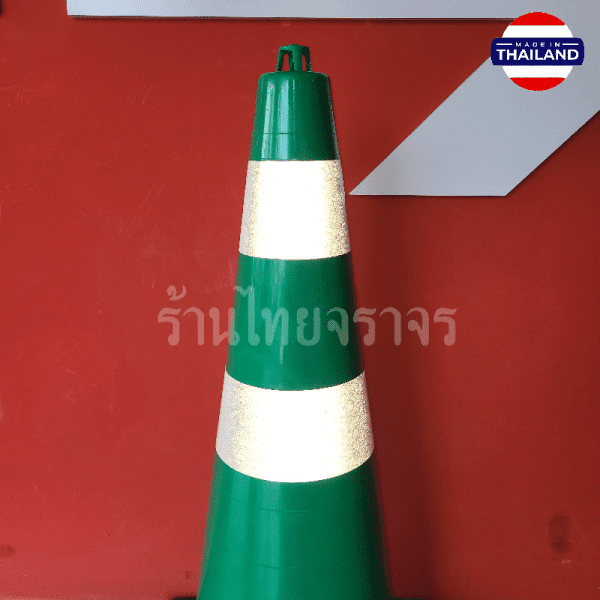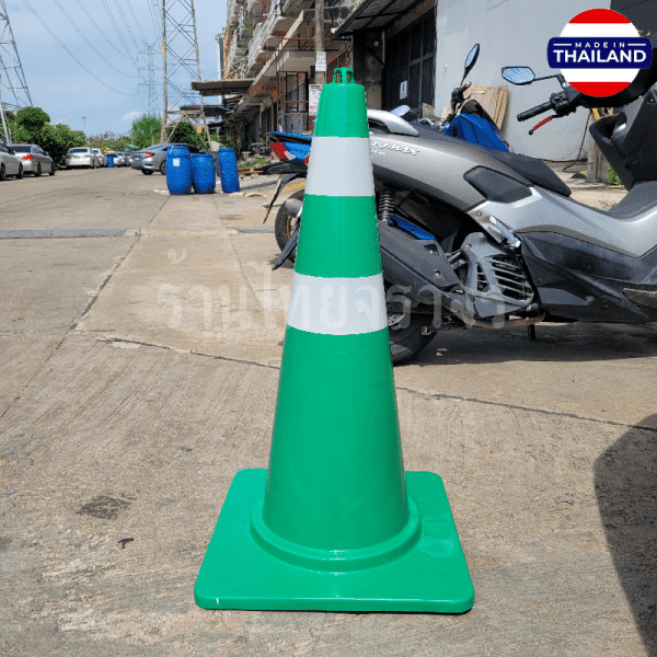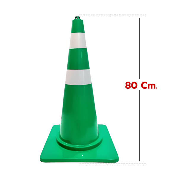 กรวยจราจรสีเขียว ความสูง 80 Cm. คาดแถบสะท้อนแสง 2 แถบ วัสดุ EVA+PP