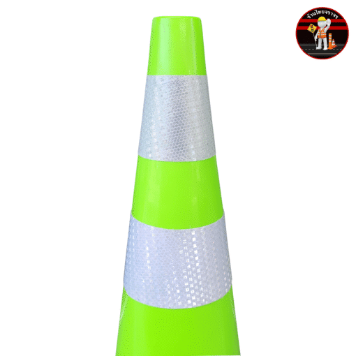 กรวยจราจรสีเขียว ความสูง 70 Cm. คาดแถบสะท้อนแสง 2 แถบ วัสดุ PVC