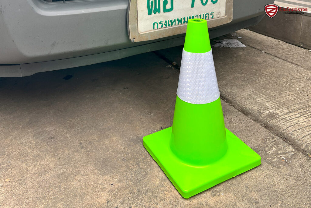กรวยจราจร PVC สีเขียวรถเหยียบทับได้มากกว่า 200 ครั้ง แข็งแรง ทนทาน ไม่ต้องซื้อเปลี่ยนบ่อยๆ
