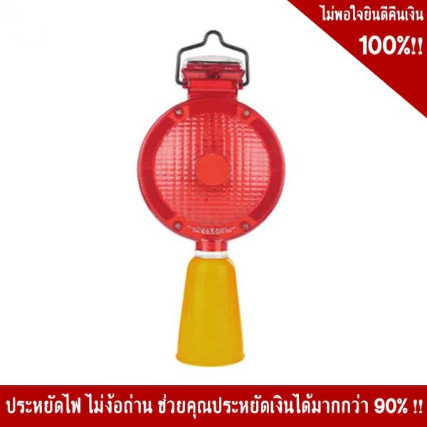 - ไฟแฟลชโซล่าเซลล์ ⌀ 7 นิ้ว สำหรับติดกรวยจราจร สีแดง