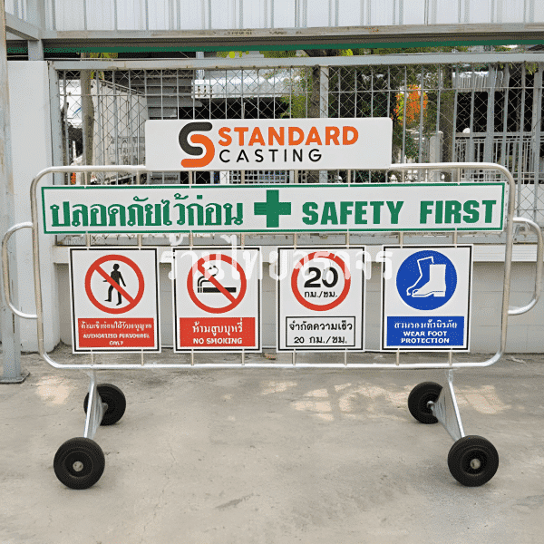 แผงกั้นสแตนเลสปลอดภัยไว้ก่อน ติดข้อความต่างๆตามที่ต้องการ บ่งบอกข้อความแจ้งเตือนได้อย่างชัดเจน ครบถ้วนภายในแผงกั้นเดียว