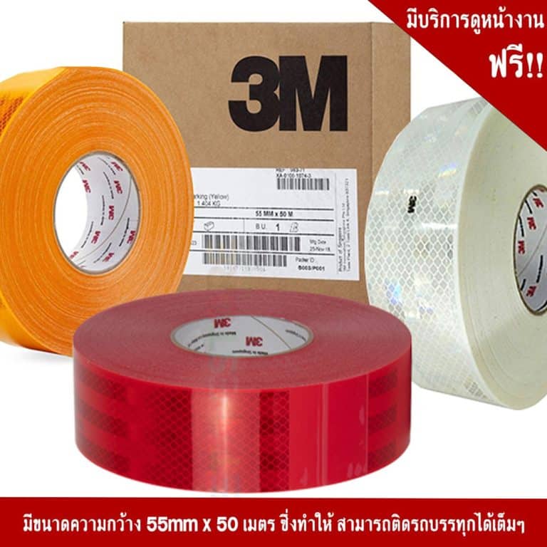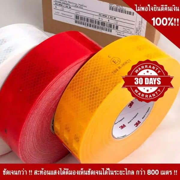 เทปสะท้อนแสง 3M สีแดง เหลือง ขาว มาตรฐานกรมขนส่งทางบก 53 มิล. x 50M