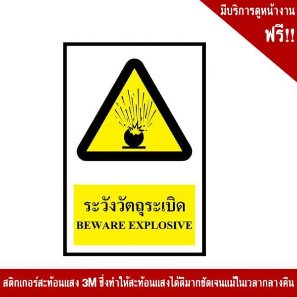 ป้ายระวังวัตถุระเบิด WA02 สะท้อนแสง 3M
