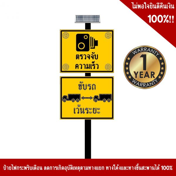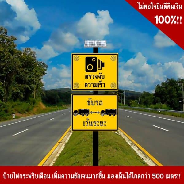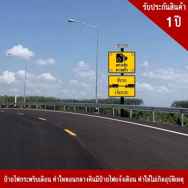 - ป้ายไฟกระพริบเตือน ตรวจจับความเร็ว และ ขับรถเว้นระยะ ทำให้ปัญหาของคุณเป็นเรื่องง่าย ทำให้ในตอนกลางคืนมีป้ายไฟแจ้งเตือน ทำให้ไม่เกิดอุบัติเหตุ