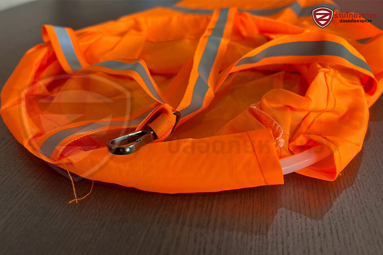 ถุงลมบอกทิศทางสีส้มคาดแถบสะท้อนแสง 3 แถบ ชนิดเชือก ผ้า oxford 210D ยี่ห้อ ZECURUM