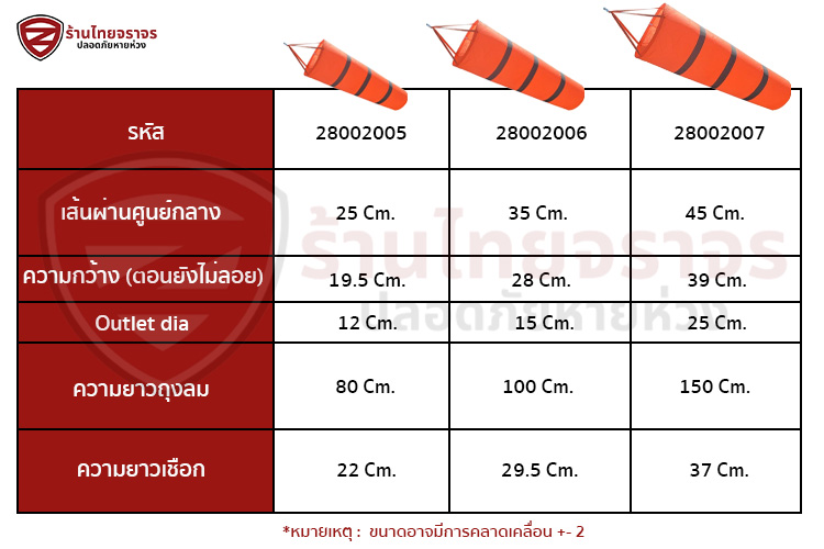 ถุงลมบอกทิศทางสีไม่ซีดเร็ว รองรับสภาพอากาศ ทนทาน พร้อมติดตั้ง