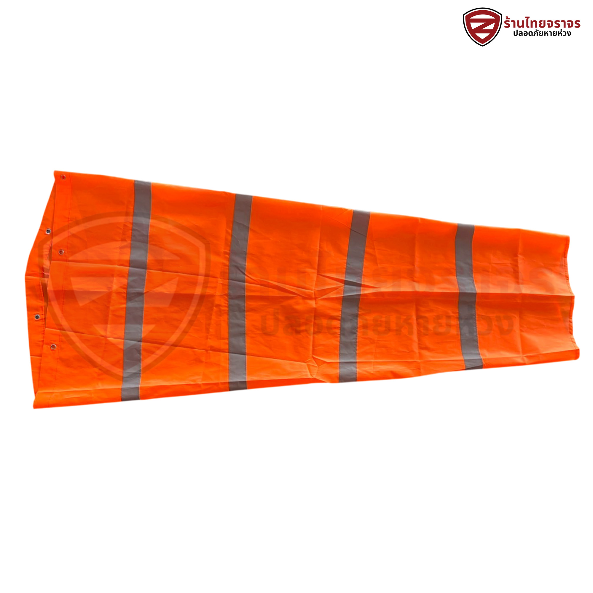 ถุงลมบอกทิศทางสีส้มคาดเเถบสะท้อนแสง 4 แถบแบบห่วงเจาะตาไก่ ผ้า oxford 210D เส้นผ่านศูนย์กลาง (Air inlet) 45 ซม Outlet dia 25 ซม. ยี่ห้อ ZECURUM